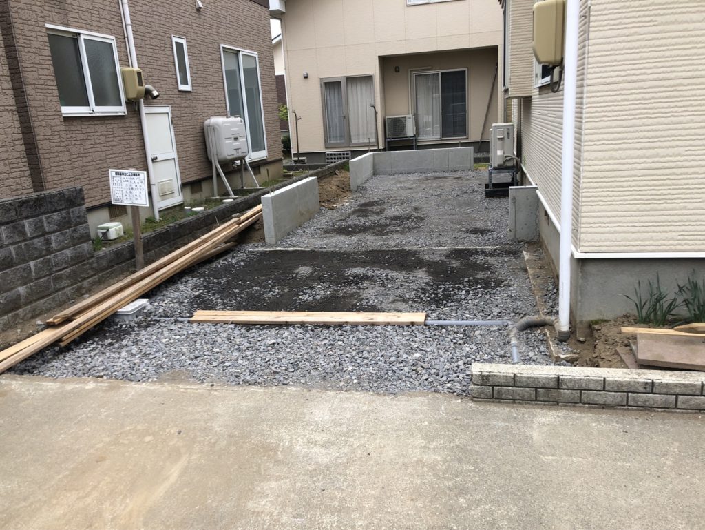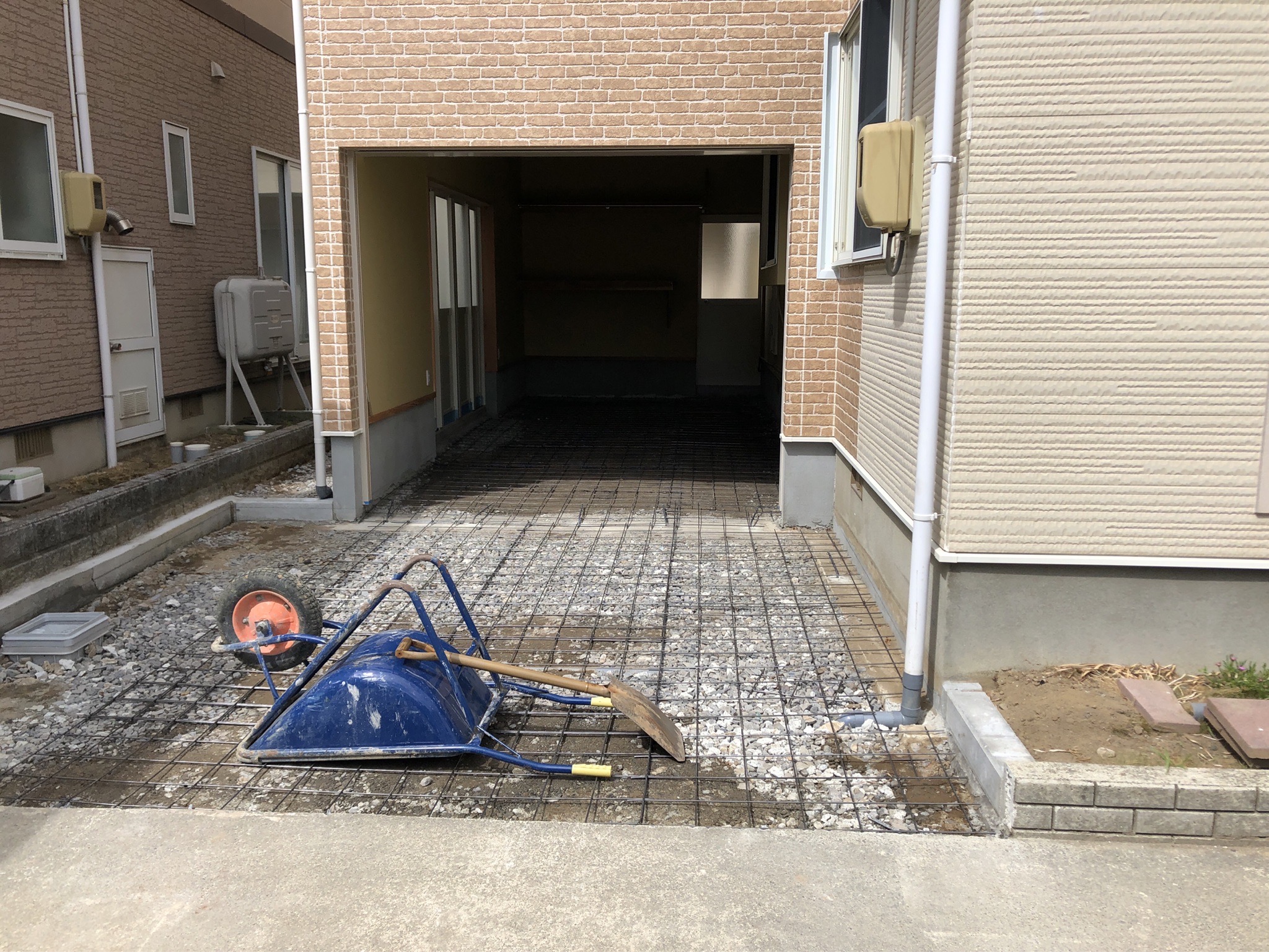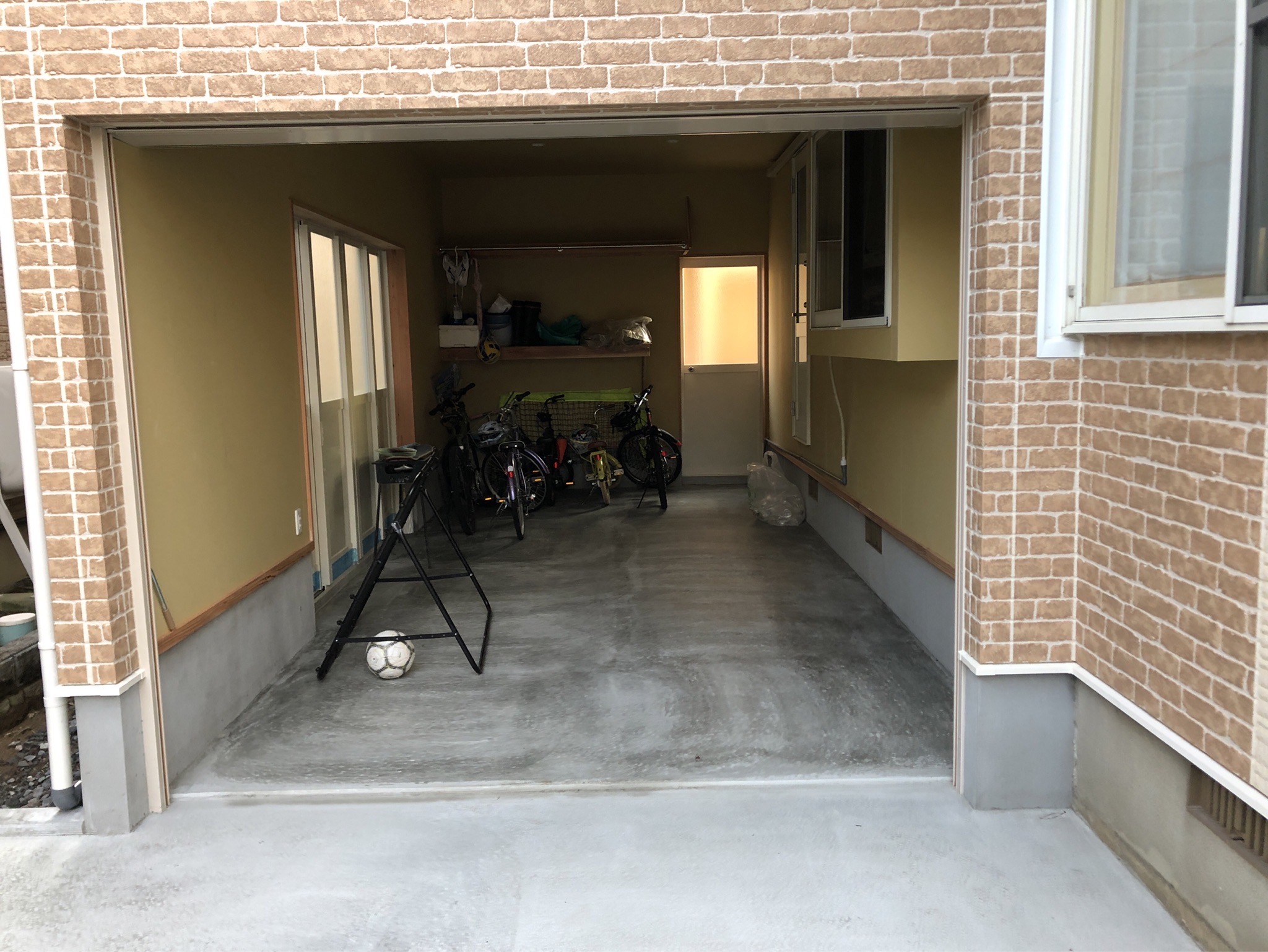 一階部分。コンクリート打設が完了し物を収納した様子です。庭だった頃より格段に機能性・収納性が向上しました。