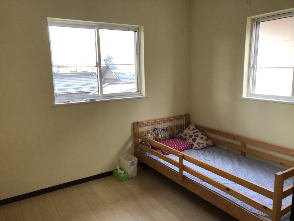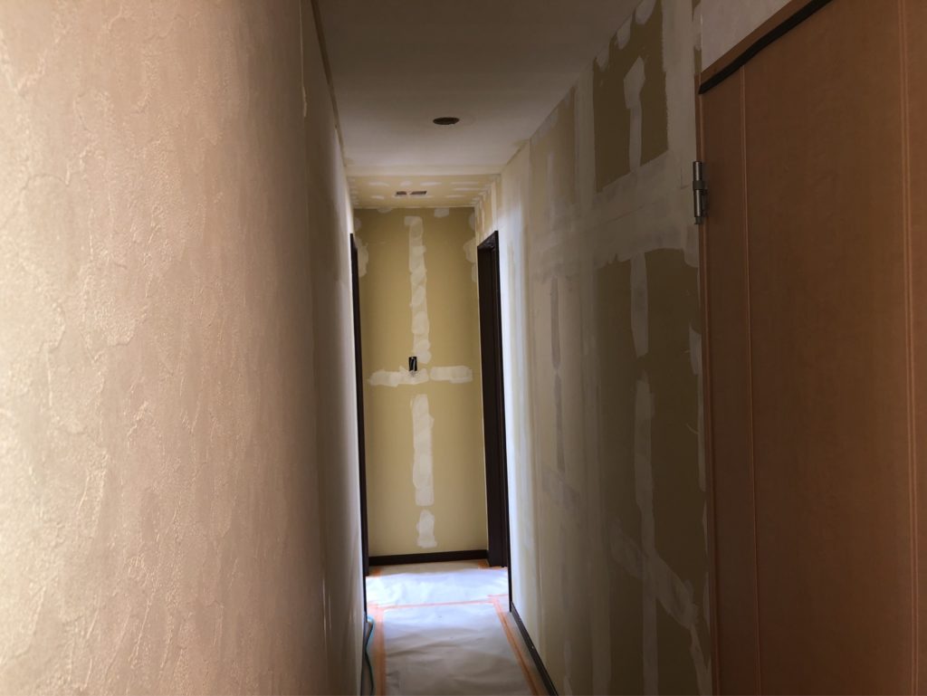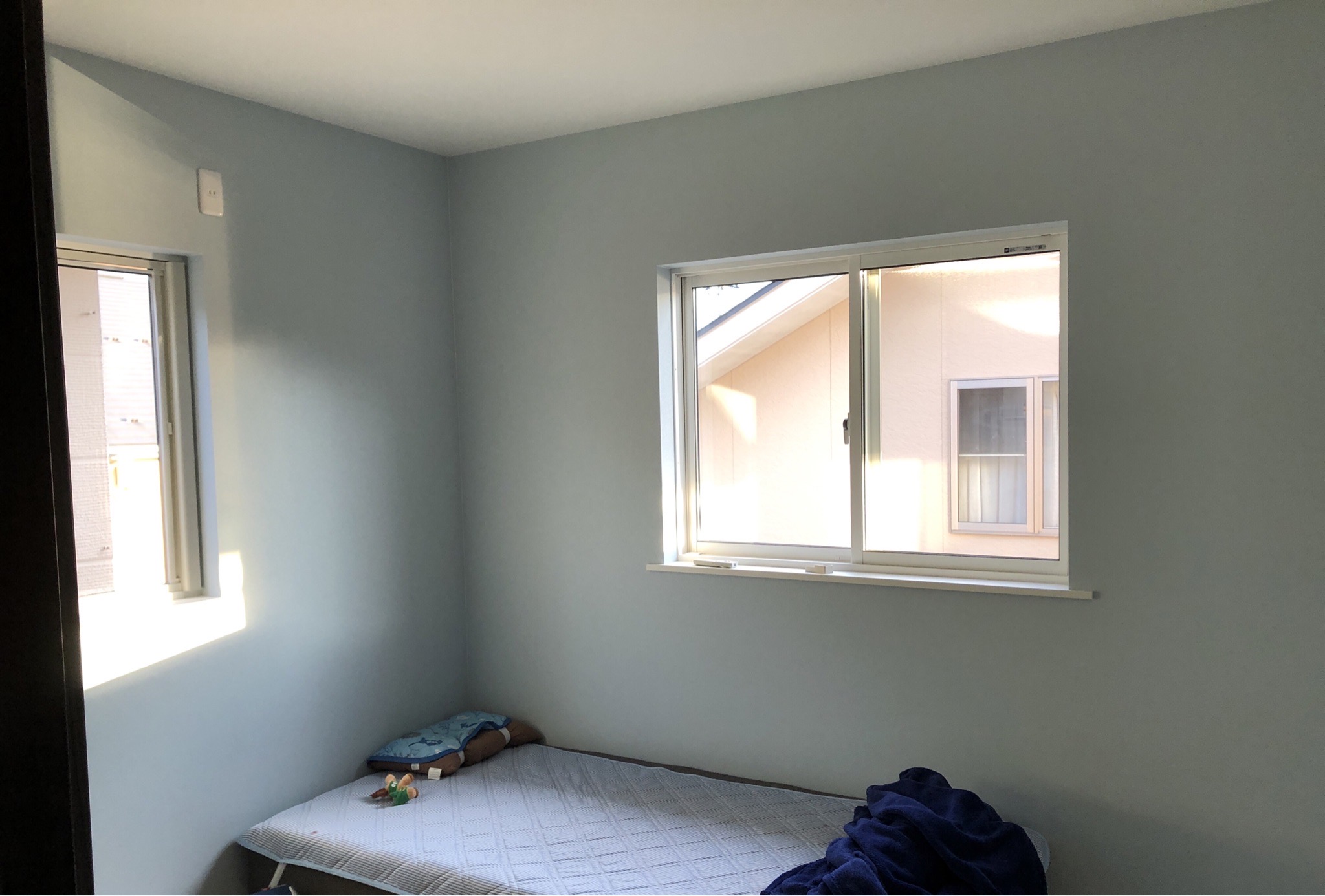 2階部分、子供部屋と廊下にクロス貼りを行い完成後の様子。洗練されたデザインで飽きのこない、生活をするのに優れた居住空間を作ることができました。
