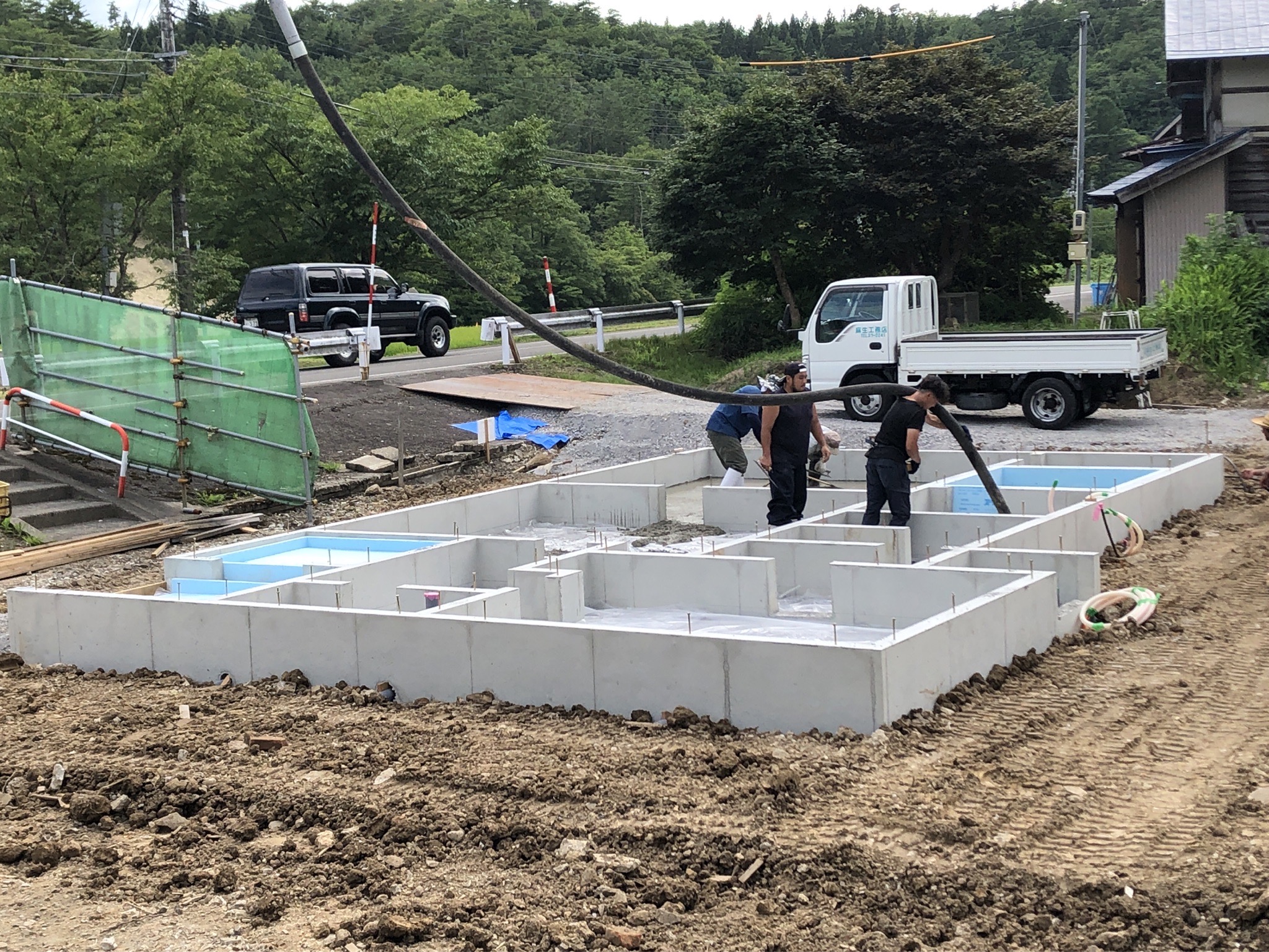 由利本荘市にてH様邸の新築工事が始まりました。地盤改良後、基礎工事に移ります。