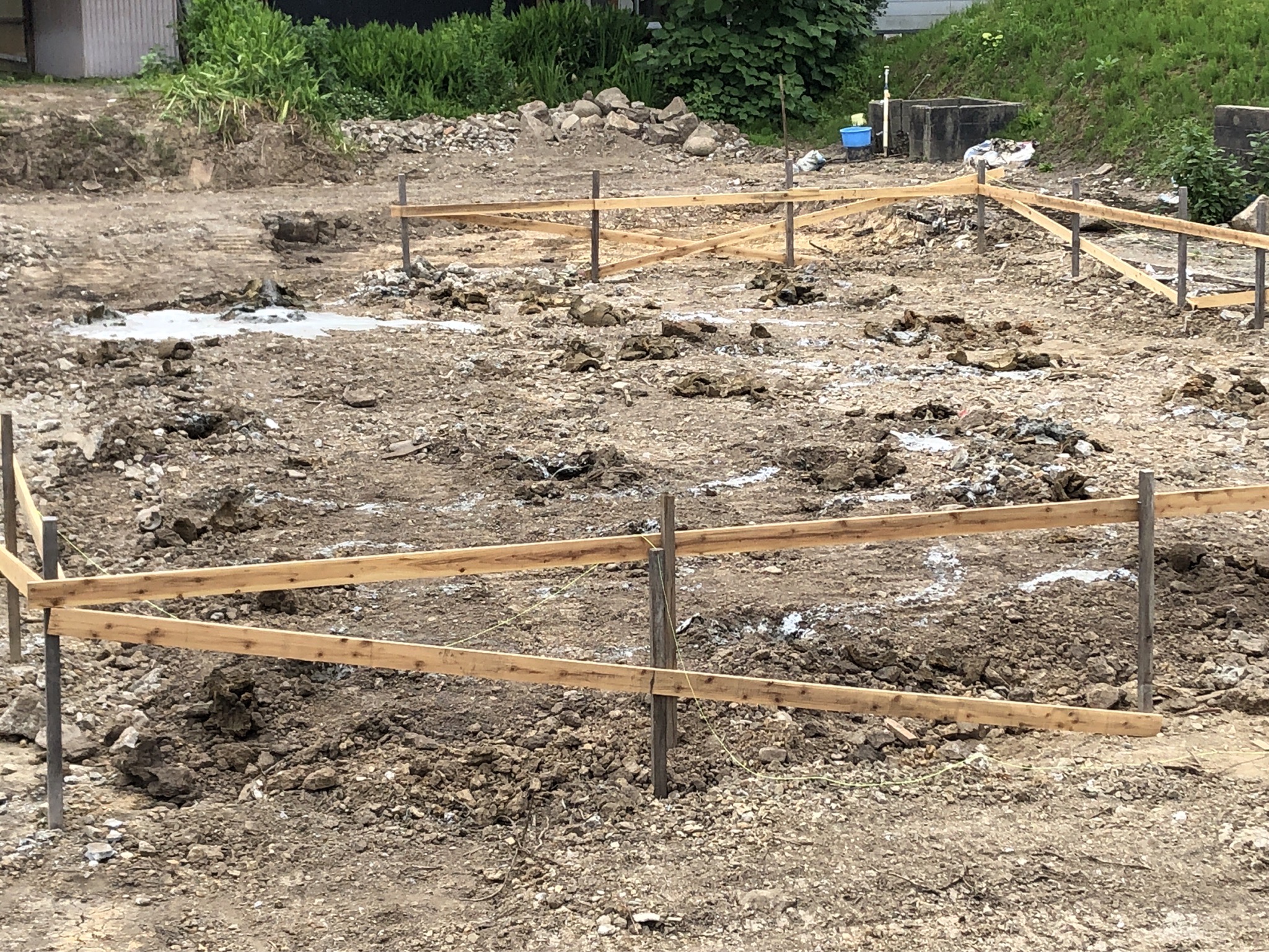 配筋検査が無事完了しましたので型枠を組み、そこへコンクリートを流し込んで住宅の基礎を作っていきます。