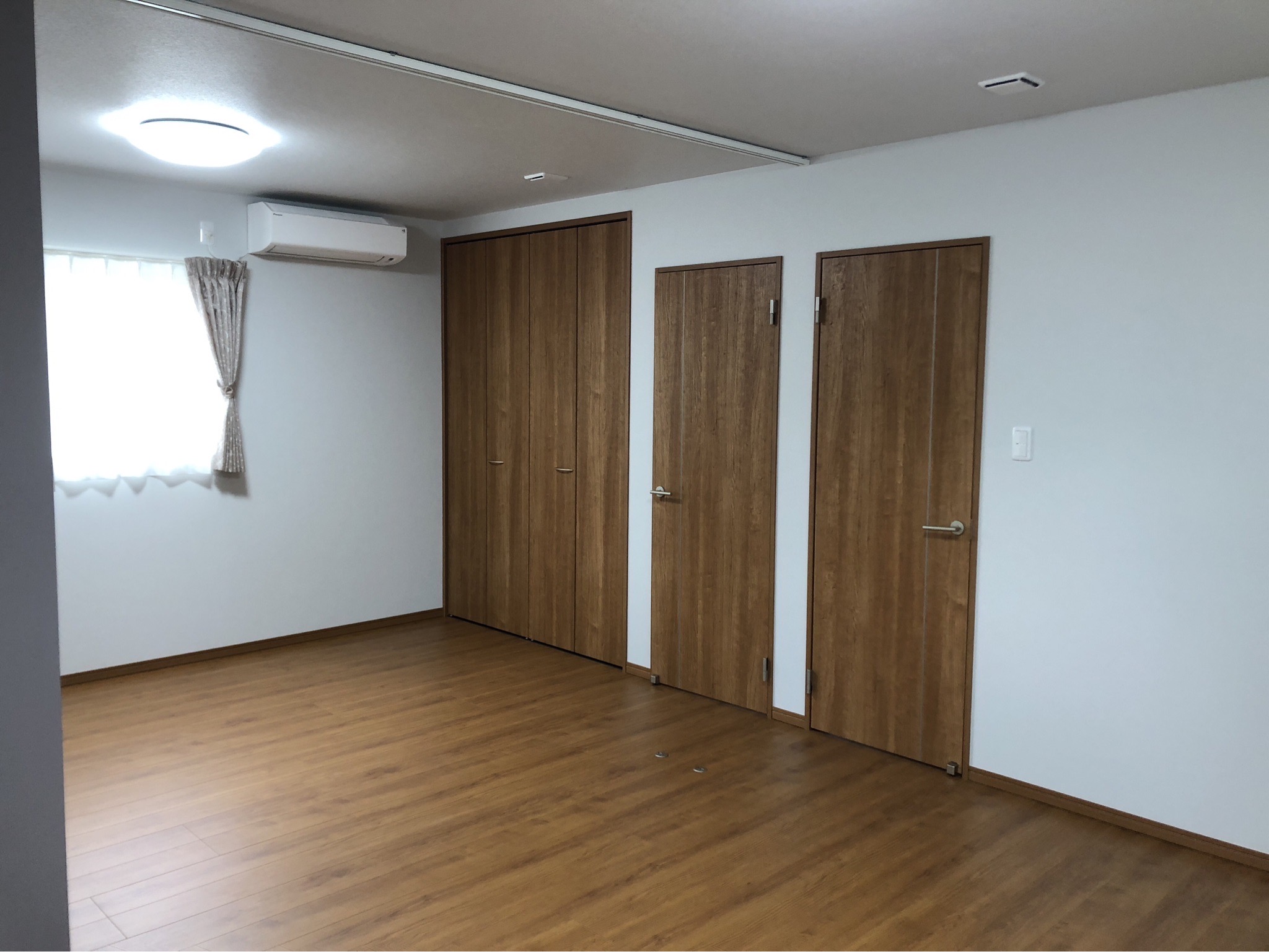 各室内の様子。リビングダイニングキッチンと同様に白を基調とした壁紙と木目調のDAIKEN建具・床材を使用し内装に統一感を出しました。沢山収納できるようにクローゼットは大きめに作りました。