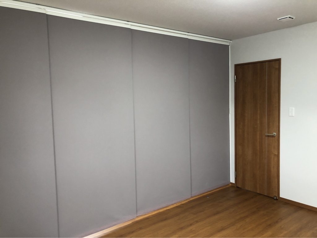 こちらの部屋は施主様からのご要望でパネルスクリーンにてその時々にワンルームにすることができるように作られています。
