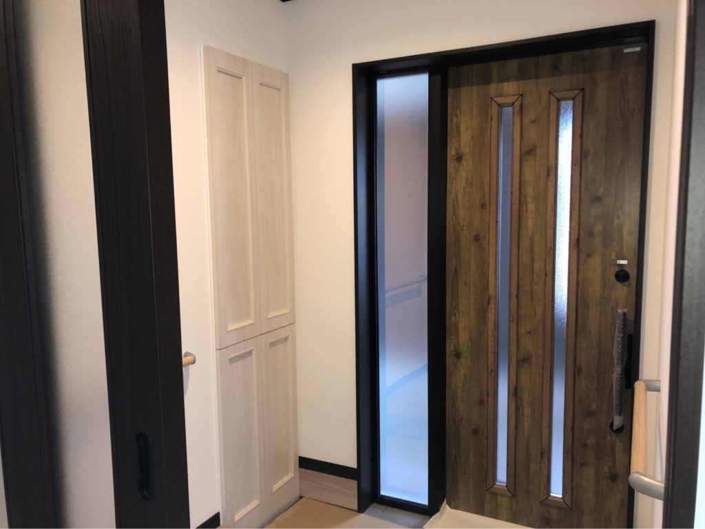 玄関の様子。施主様の「玄関に車を収納したい」というご希望に添えてこのような形となりました。
