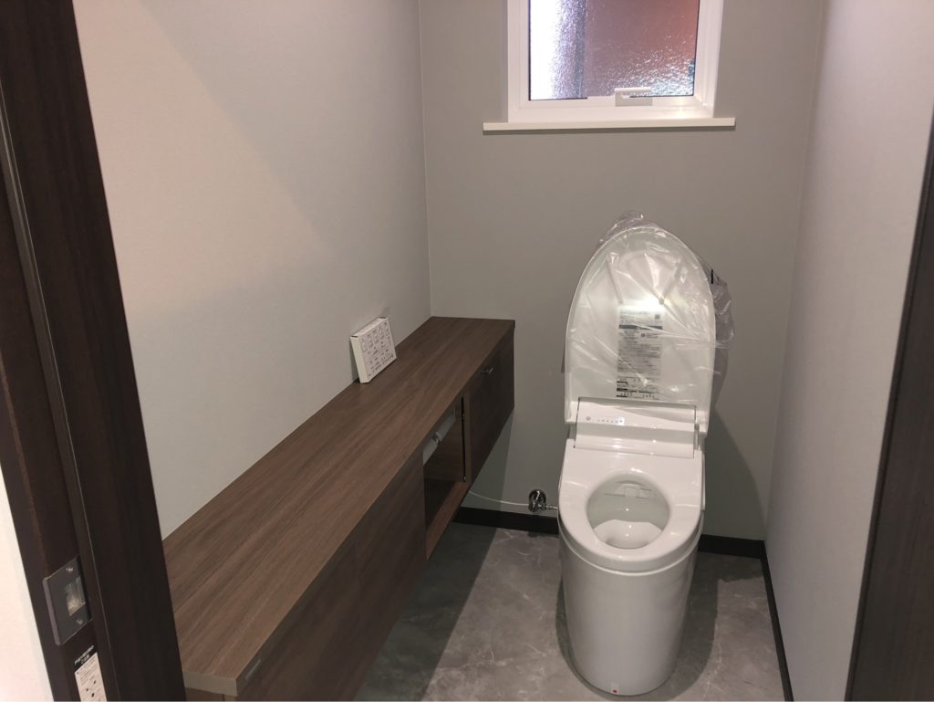 トイレはTOTO製GG3、レストルームドレッサープレミアムシリーズL、手洗器無しを取り付けました。