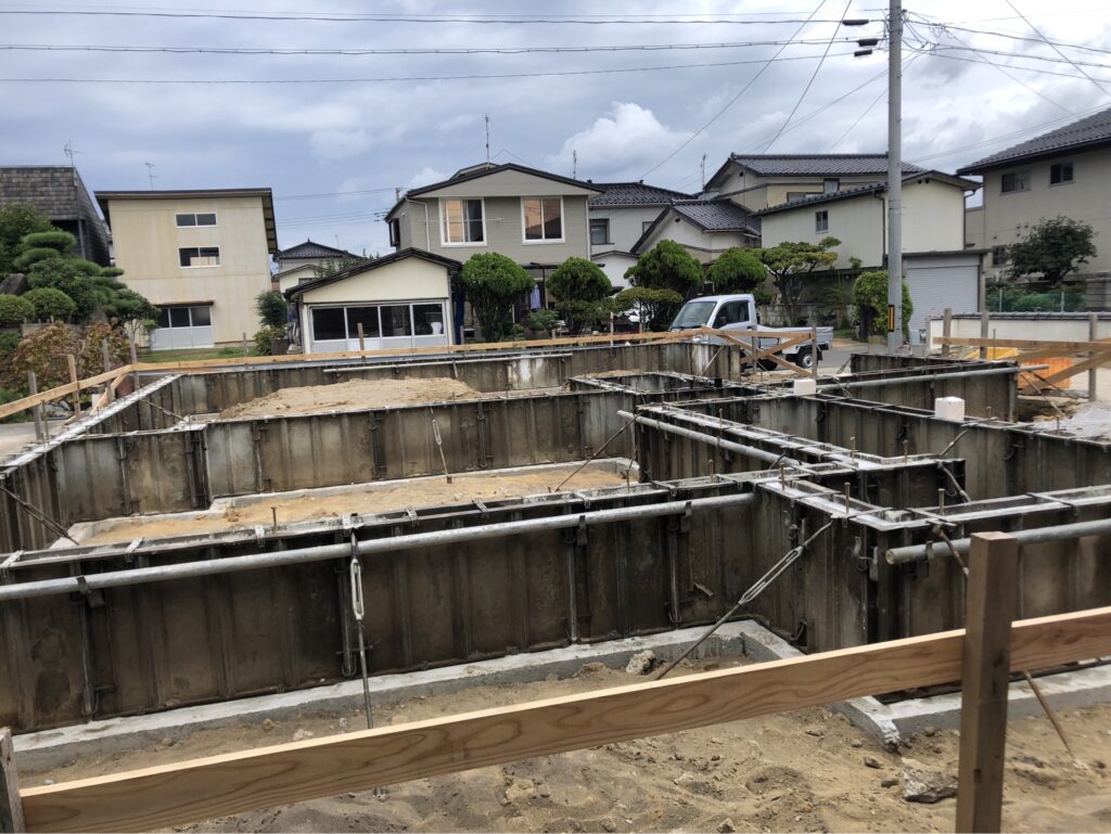建物の基礎部分を作る作業。鉄筋・型枠を組んでコンクリートを流し込みじっくりと乾かします。