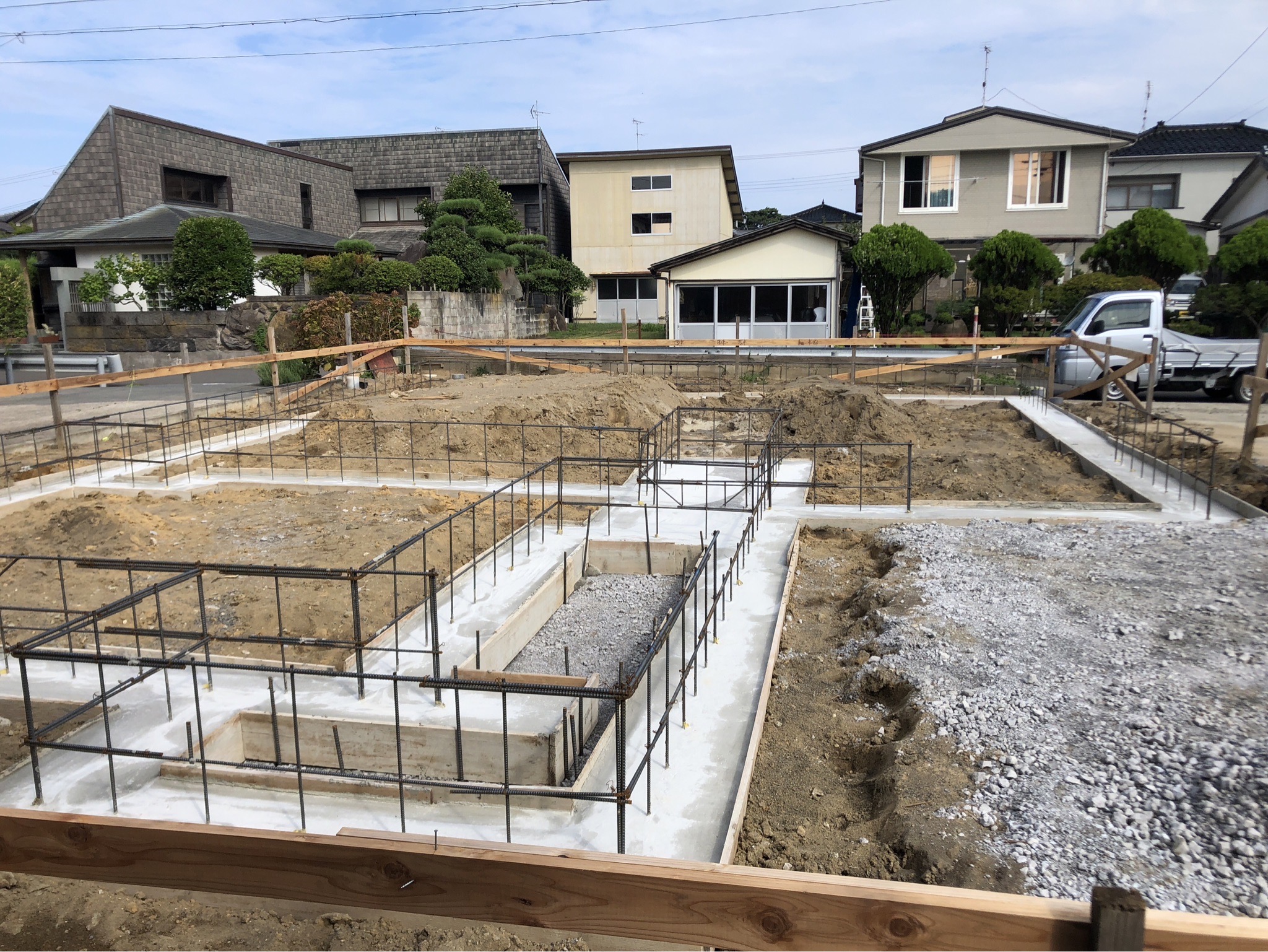 建物の基礎部分を作る作業。鉄筋・型枠を組んでコンクリートを流し込みじっくりと乾かします。