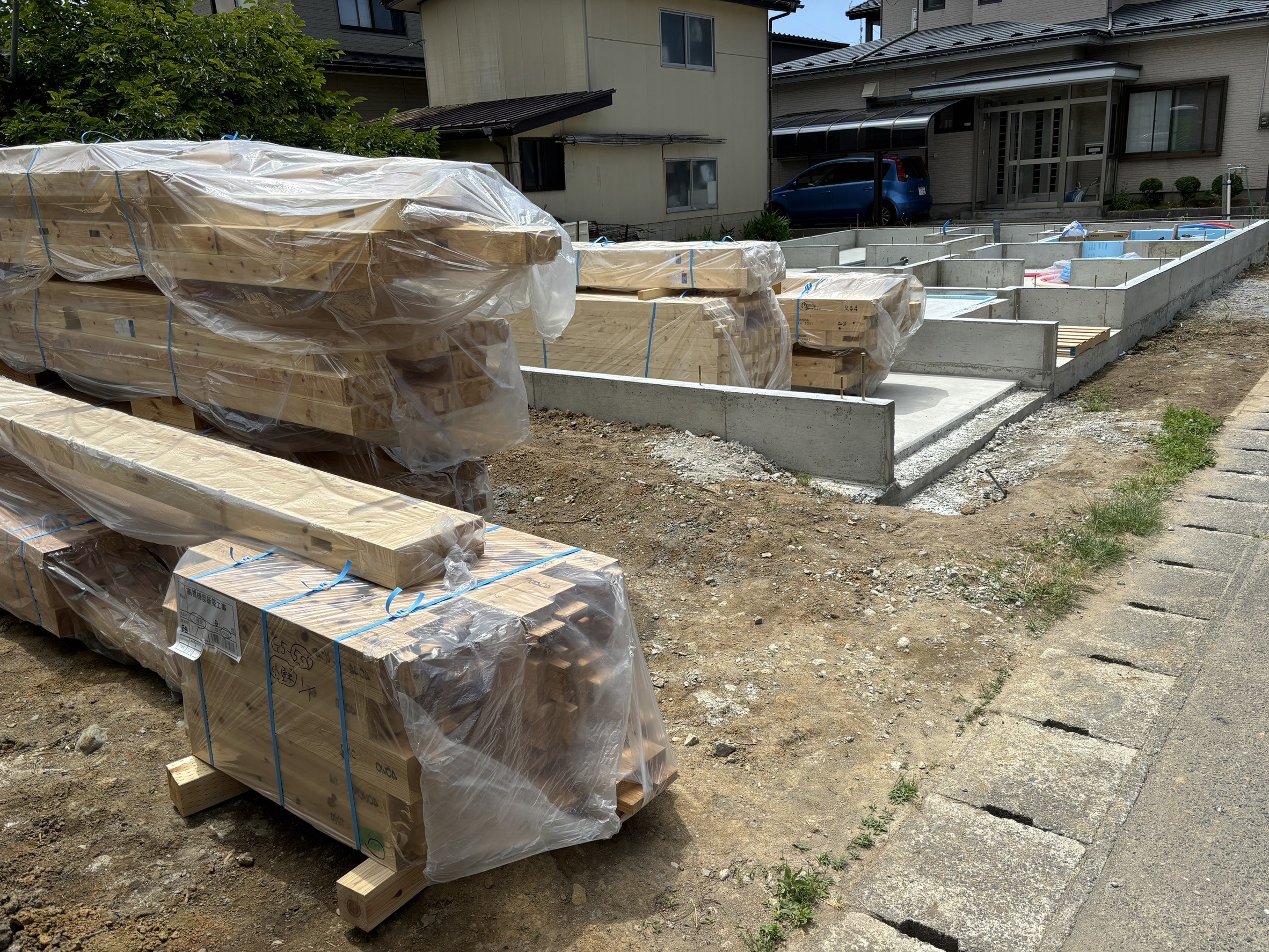 給排水管の設置完了後、いよいよ建て方に移ります。