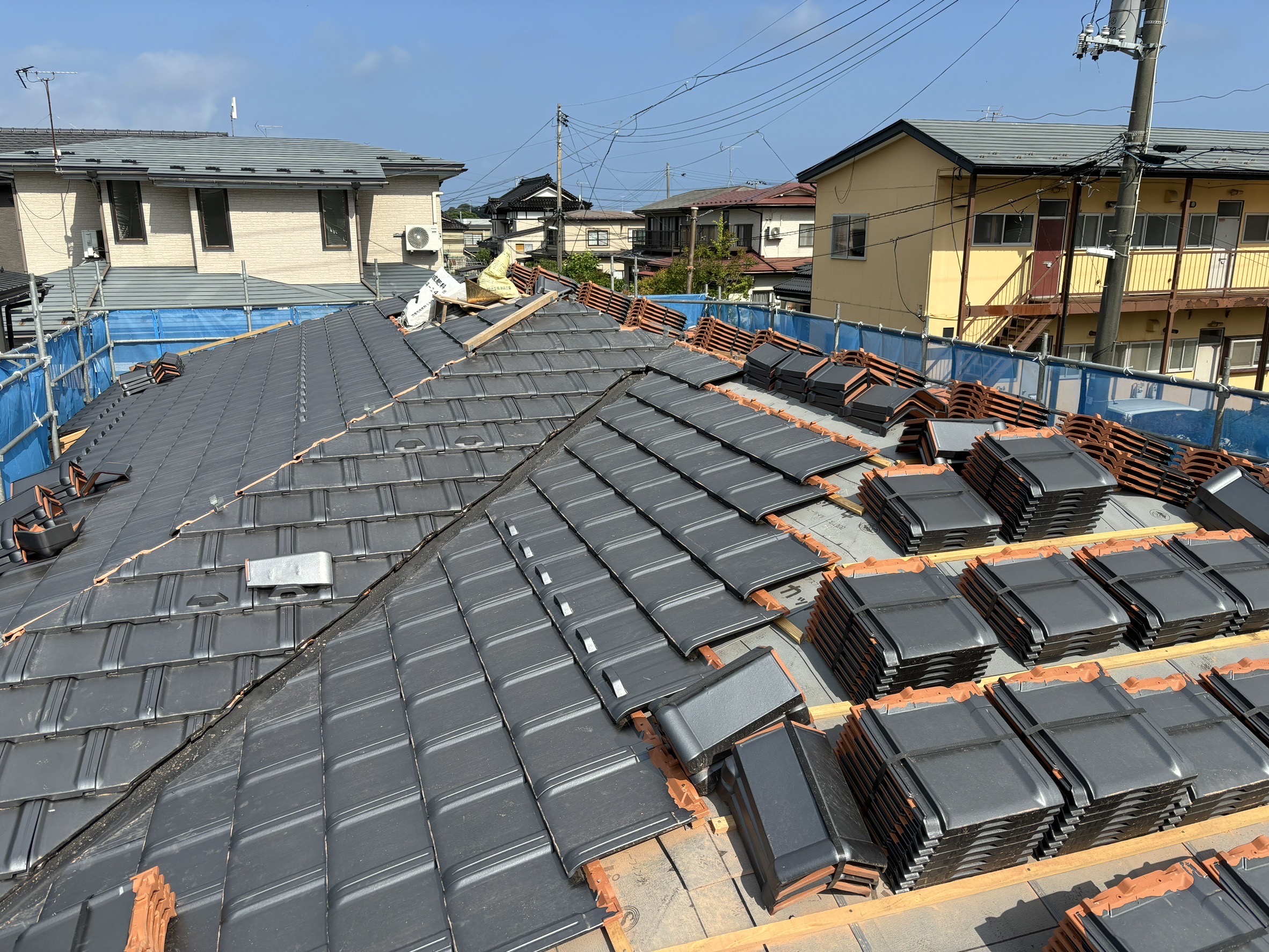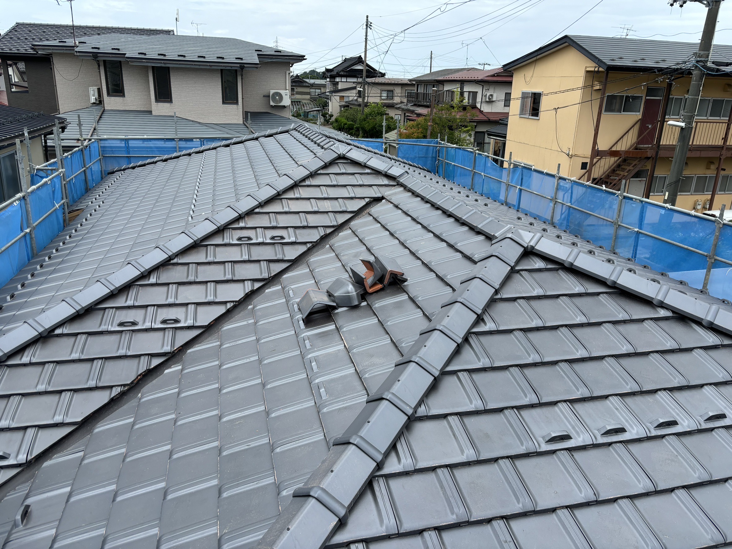 軽量瓦を敷き詰めた屋根の様子。