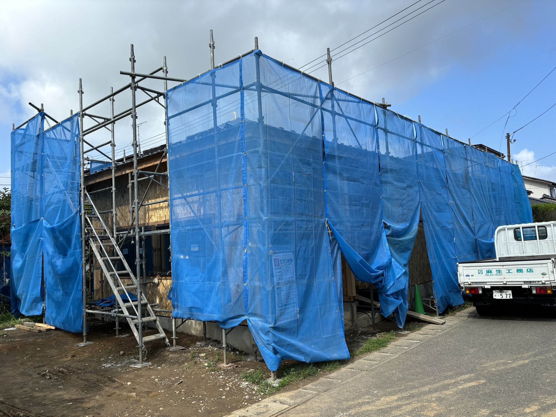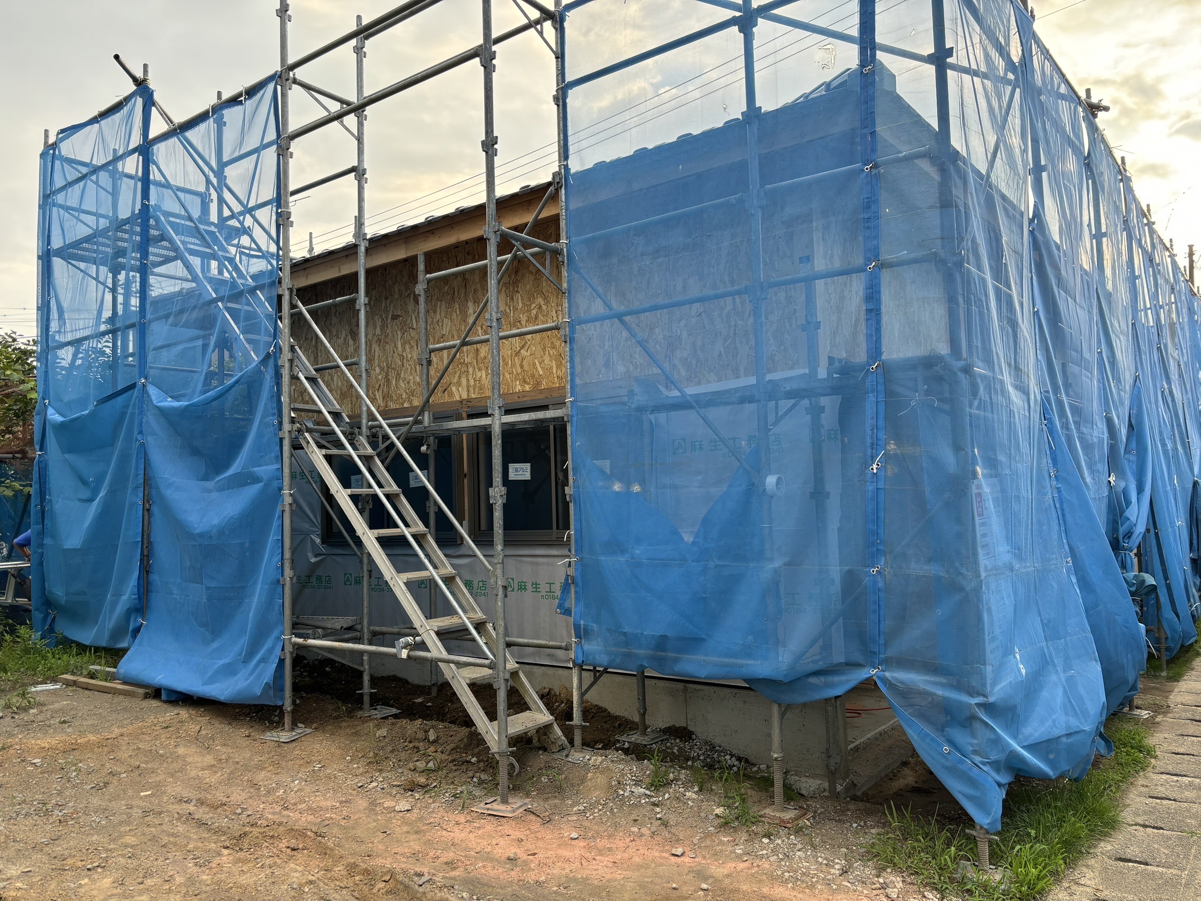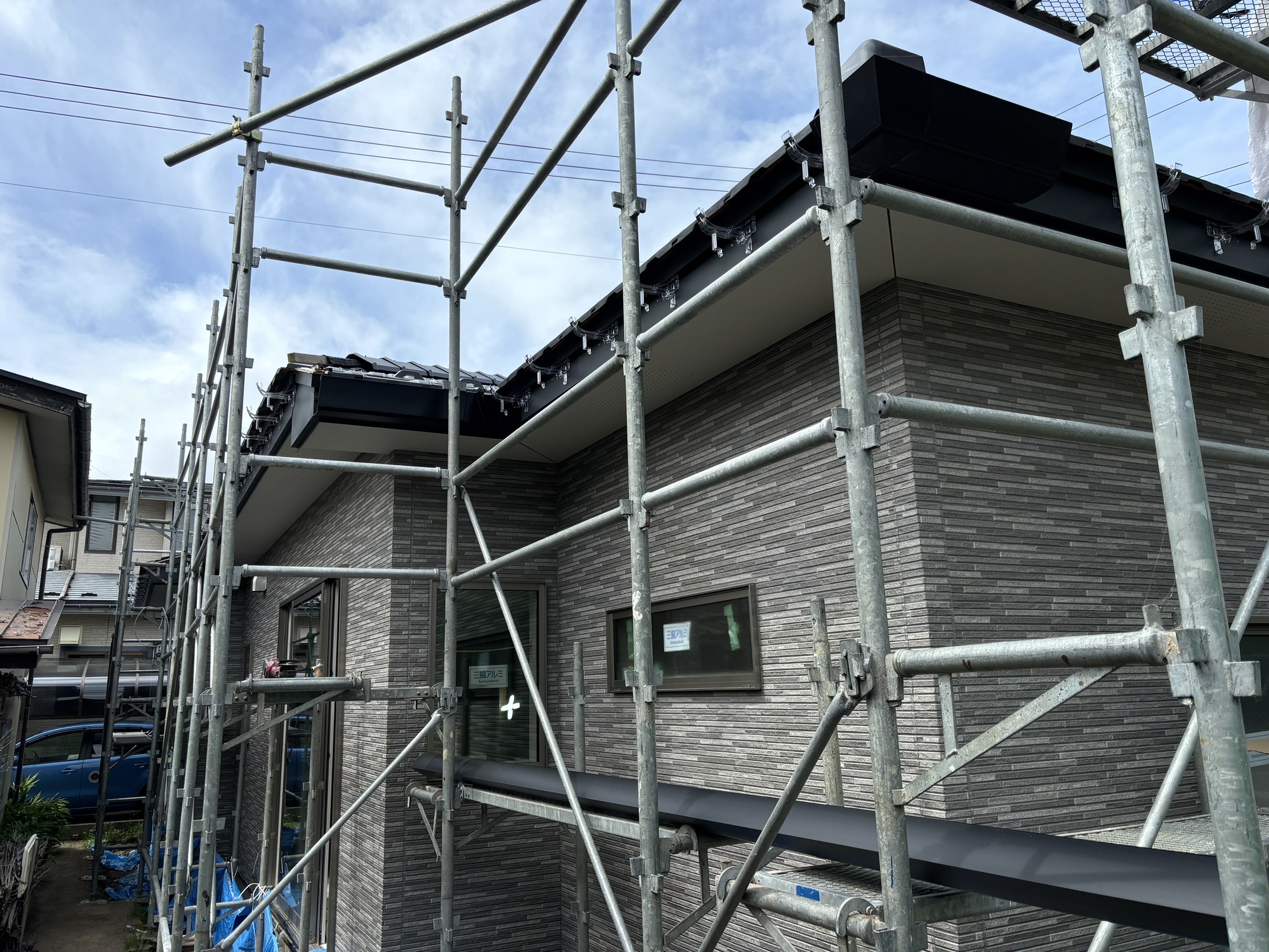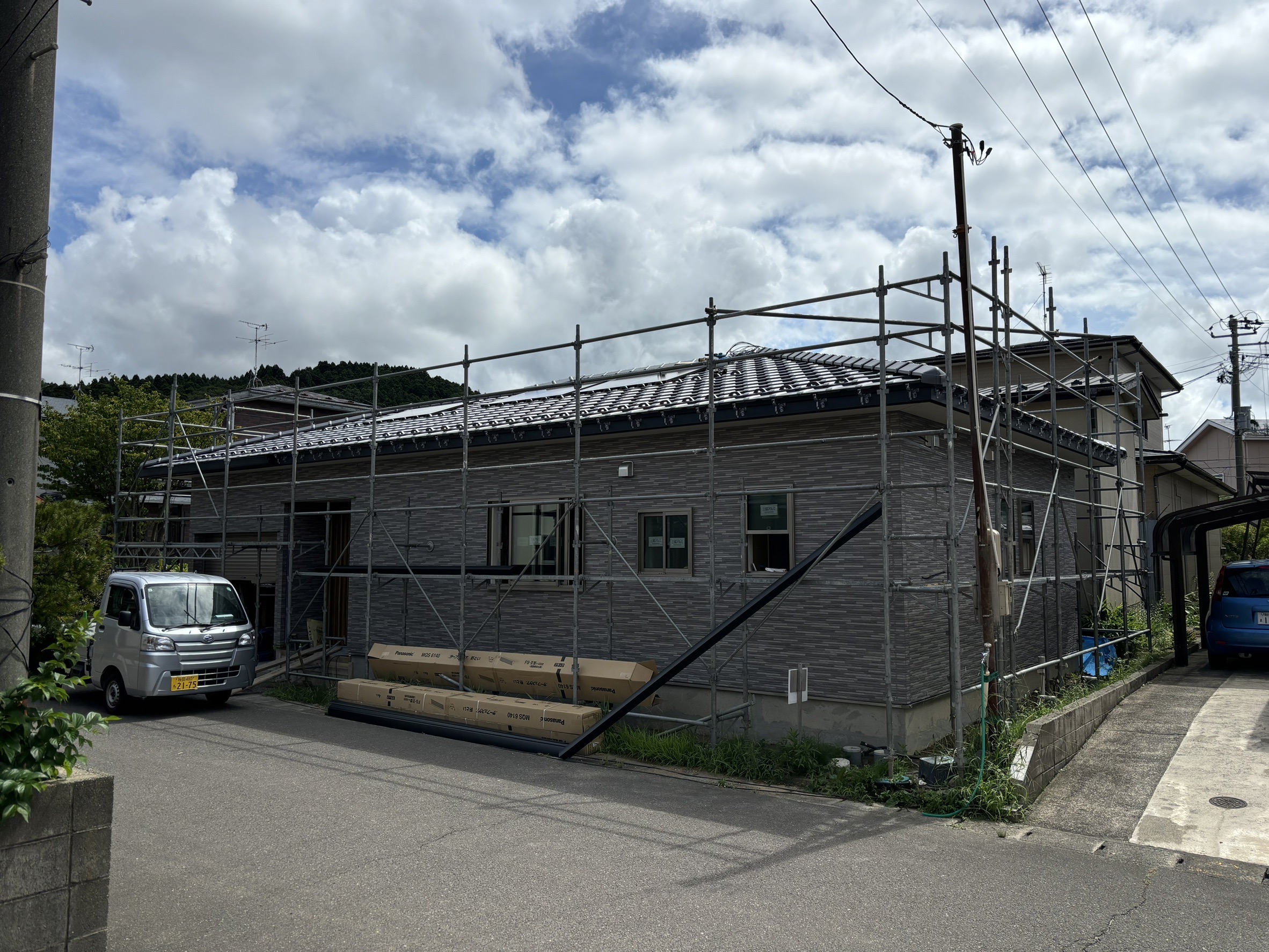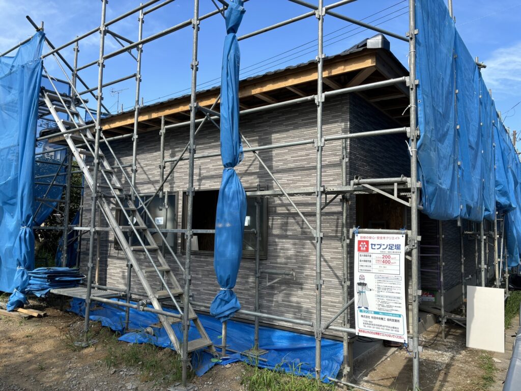 外壁材の貼り付けが完了し外観が完成しました。