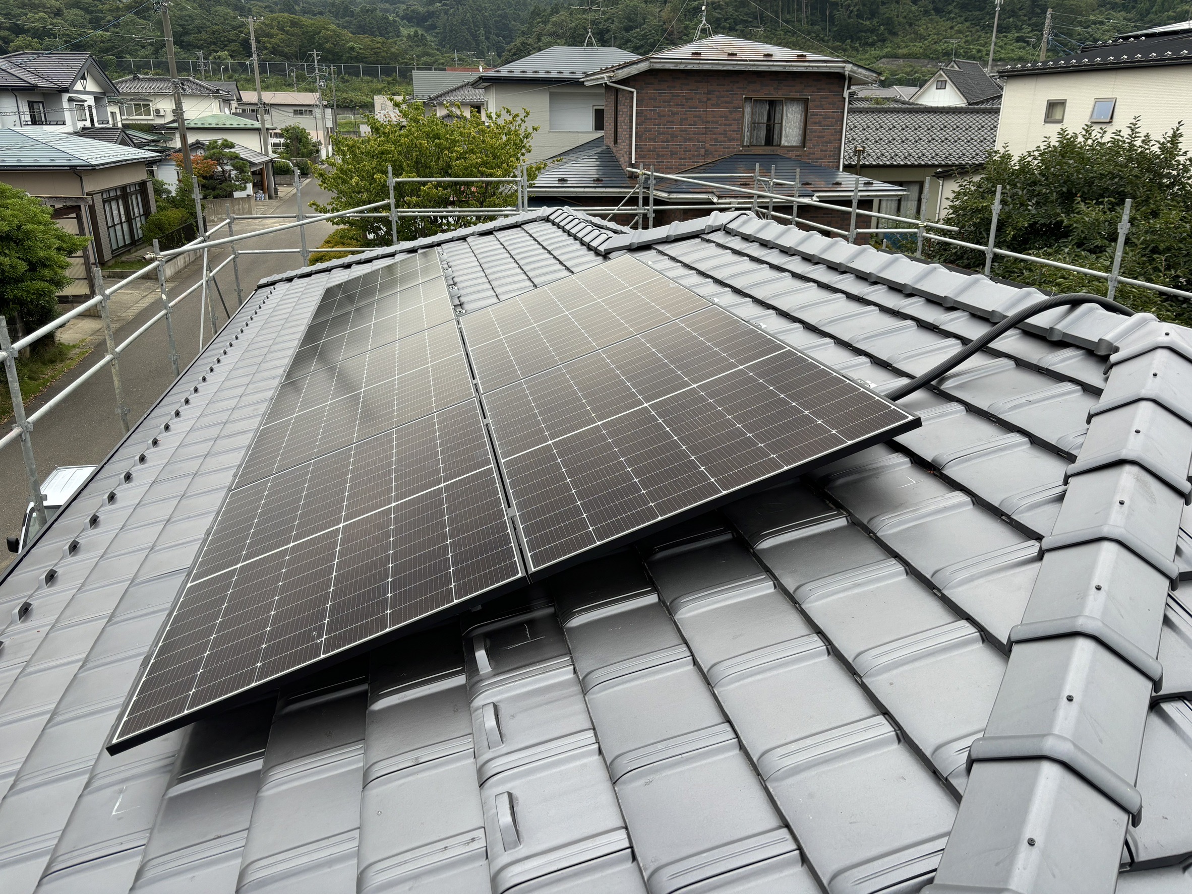 屋根には太陽光パネルを設置しました。