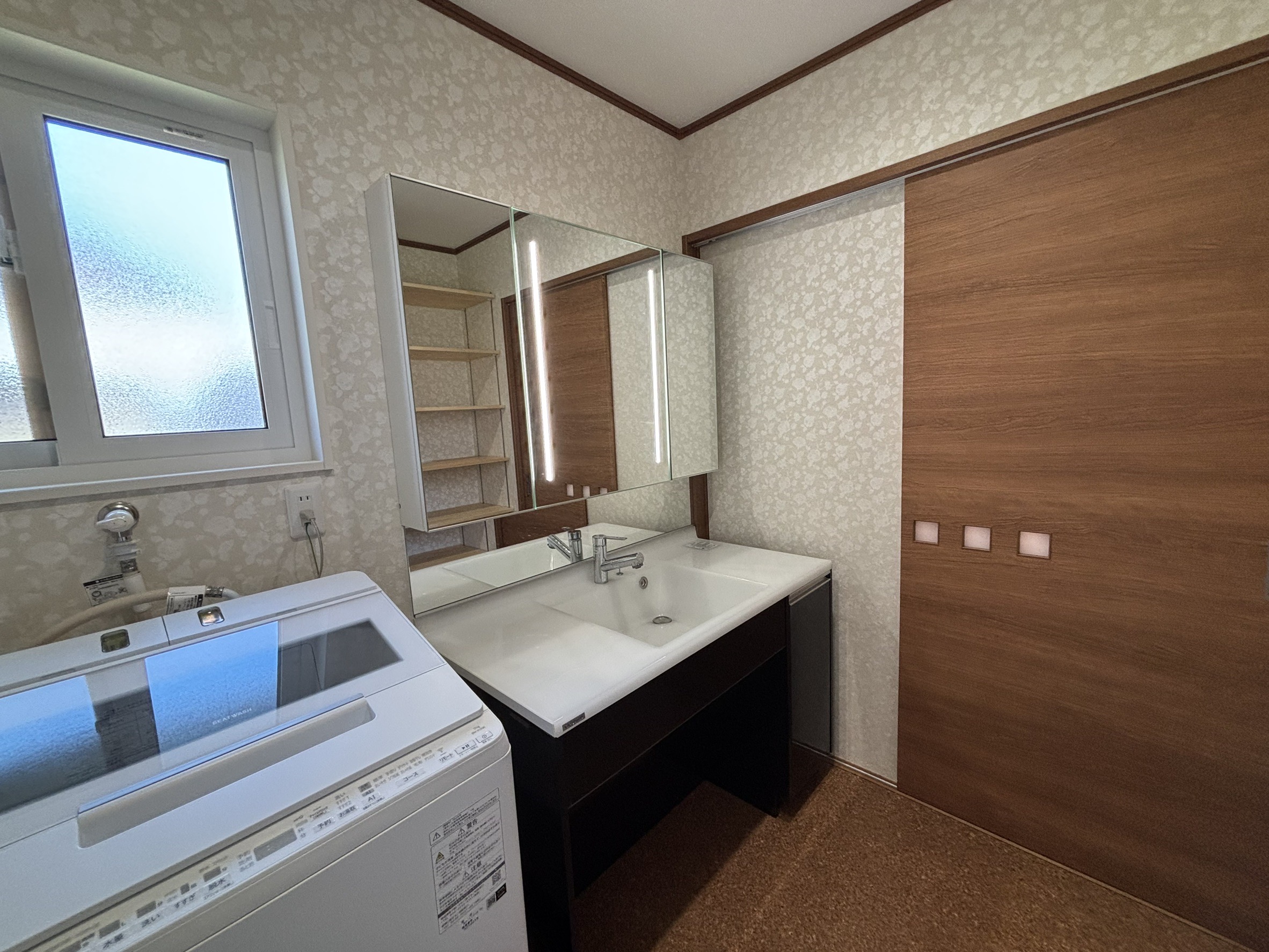 浴室入口の脱衣所にはクリナップ社製洗面化粧台「ティアリス」を導入しました。