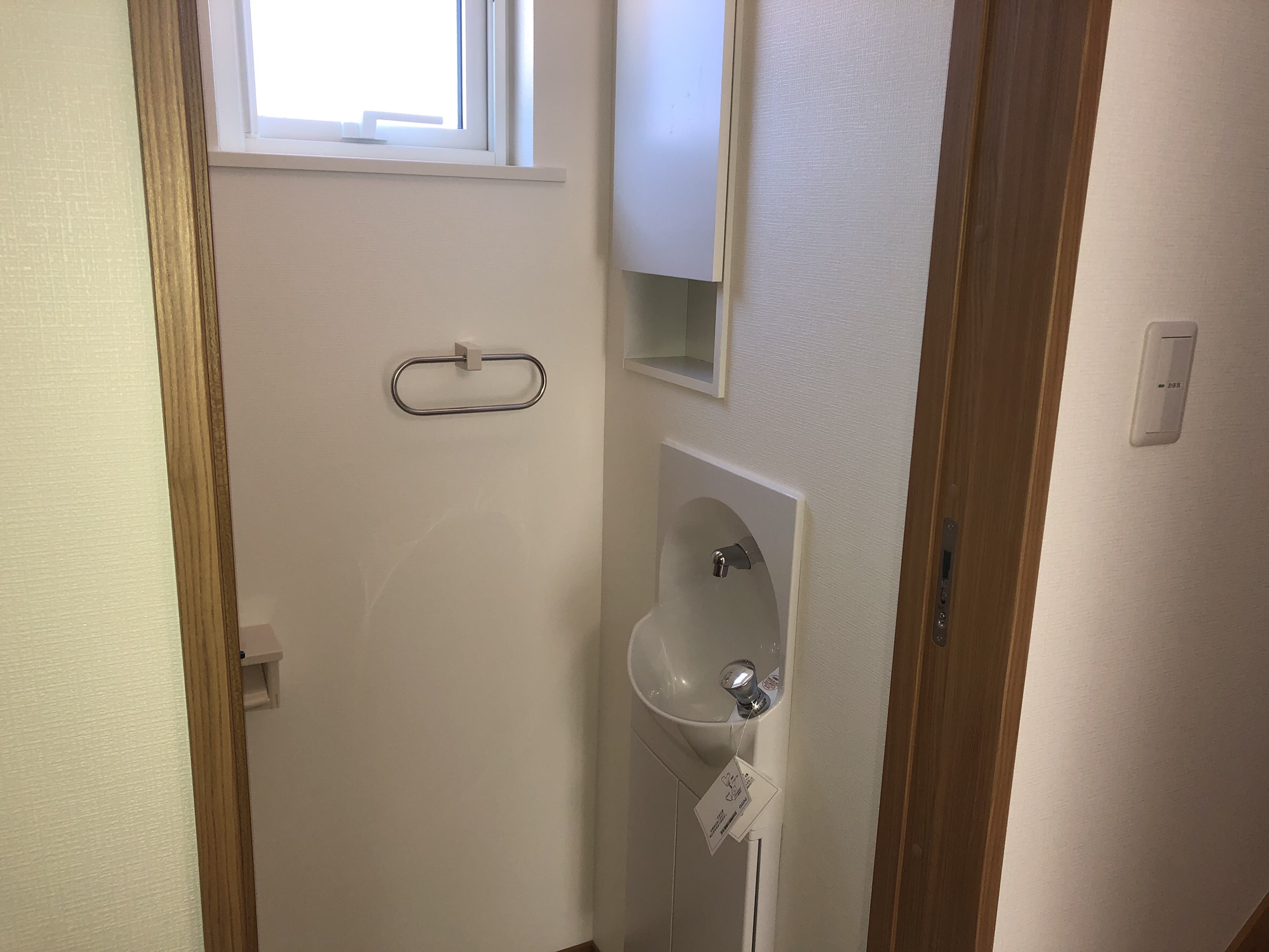 S様邸は内壁の一部にLIXILのエコカラットプラスを使用しています。エコカラットプラスは、空気中の有害物質を吸収し、消臭力もあり、インテリア性も高いことから、新築を立てるときに好評の壁材です。水回りはTOTOを使用しています。