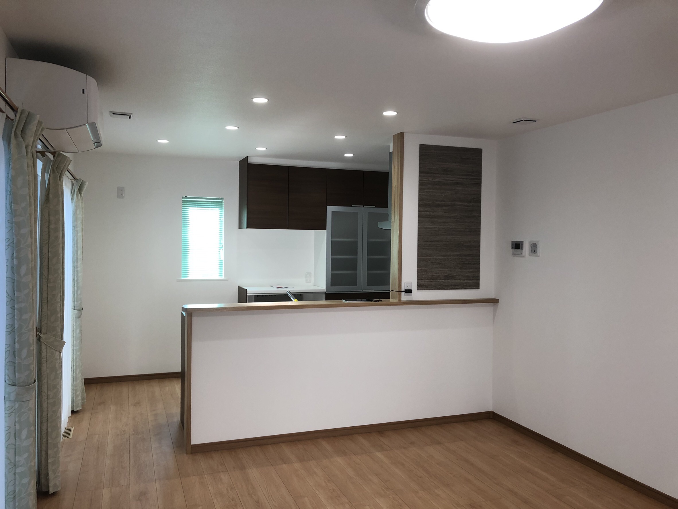 白とダークブラウンを基調とし、木の色味を大切にして作った暖かみのある住宅に仕上がりました。