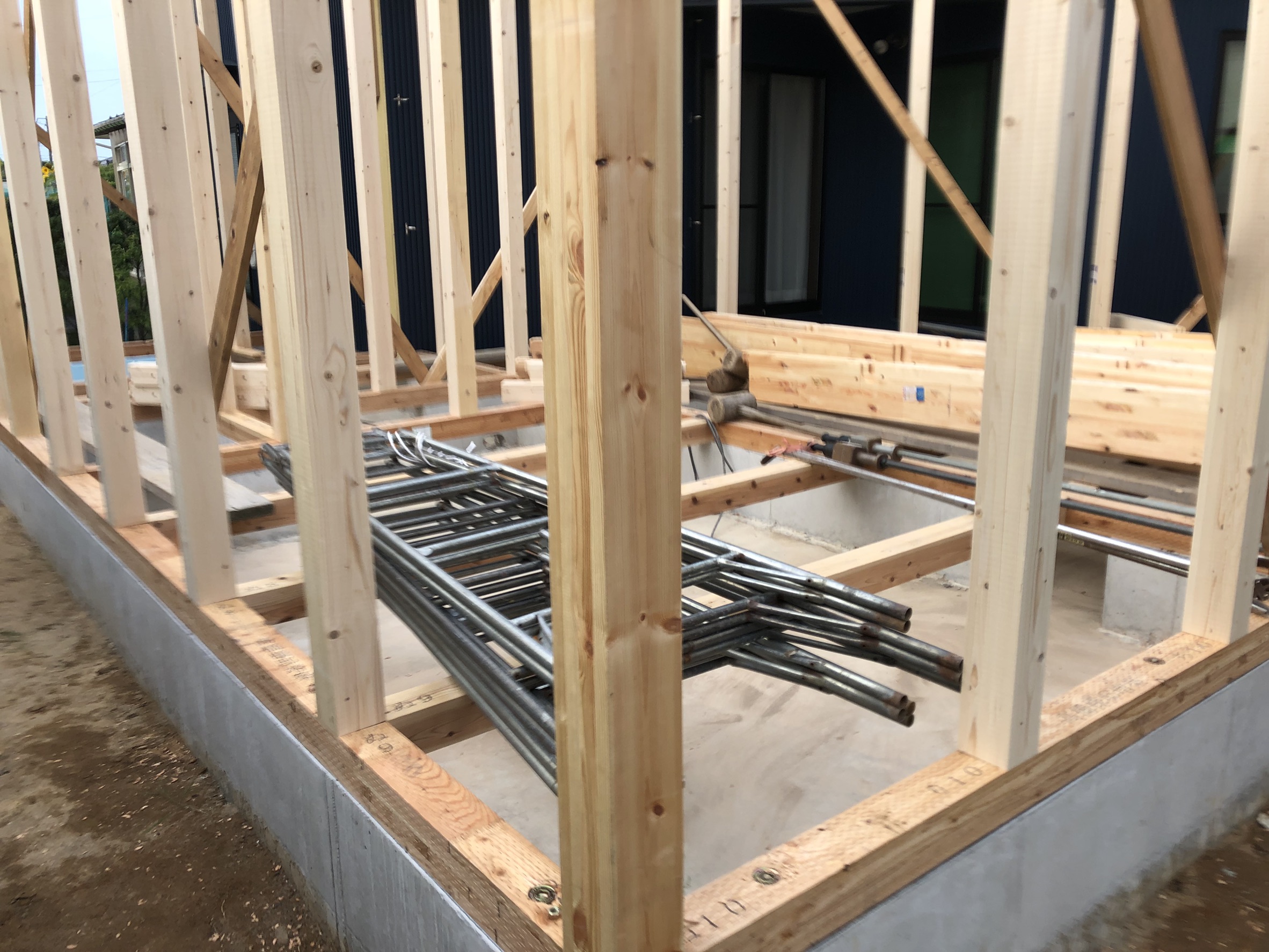 コンクリートを十分に乾かし、型枠を外したら柱や梁を組んでいきます。