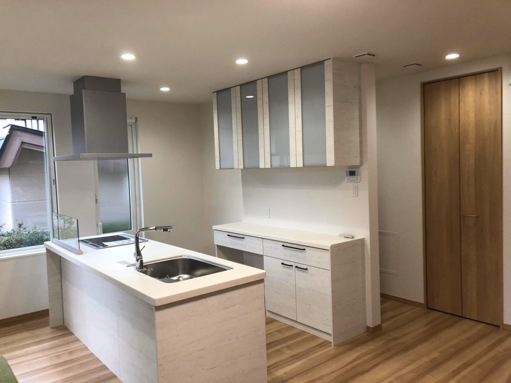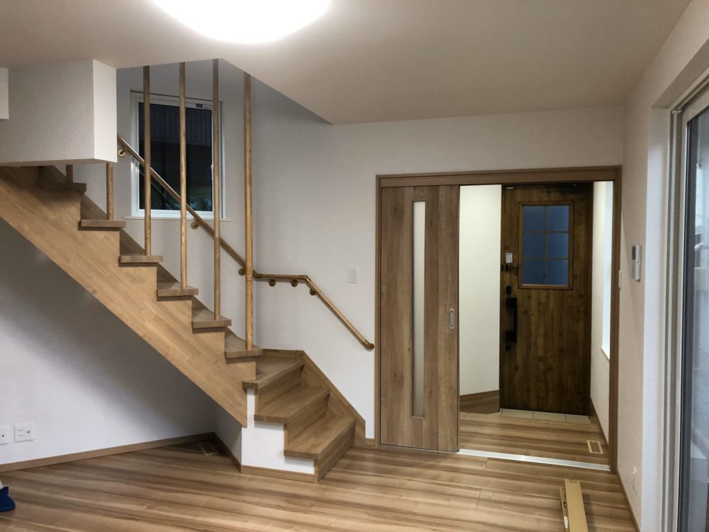 外観の様子です。2世帯のお住まいとしての増築工事でしたので、元の住宅増築による違和感なく建てることができました。続きまして内部の様子です。
