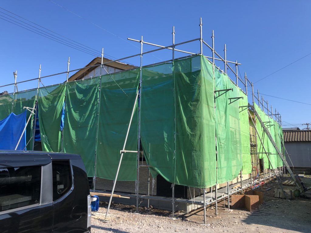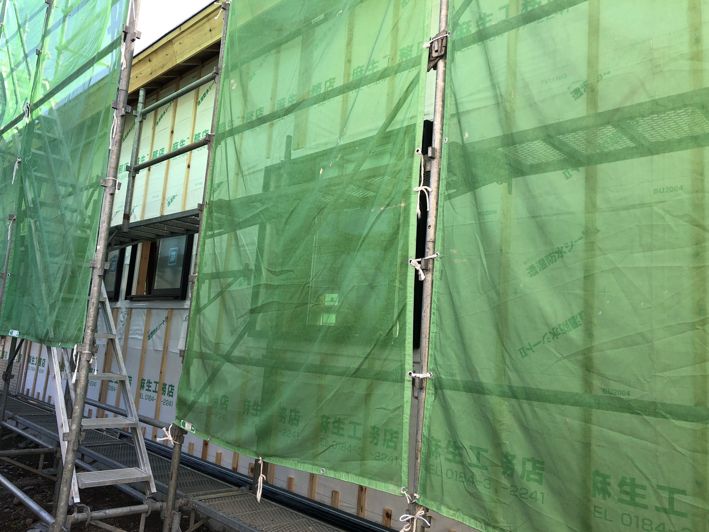 耐湿防水シートを貼り、外壁を貼る下地を作っていきます。外壁はKMEW様の親水パワーコート16㎜厚を使用しています。