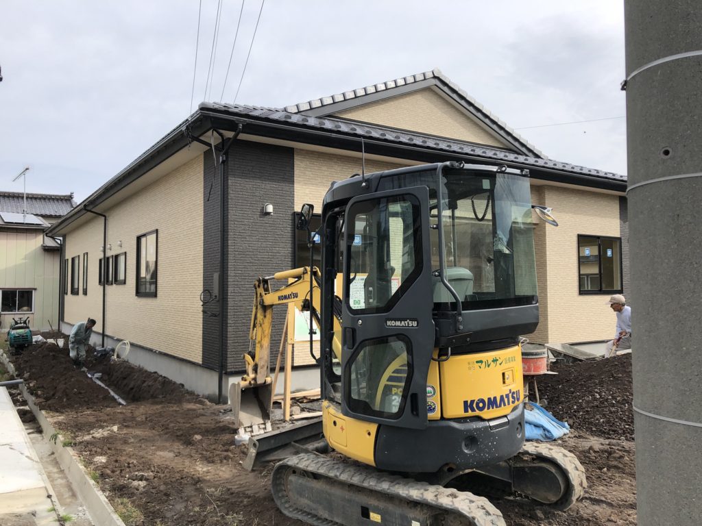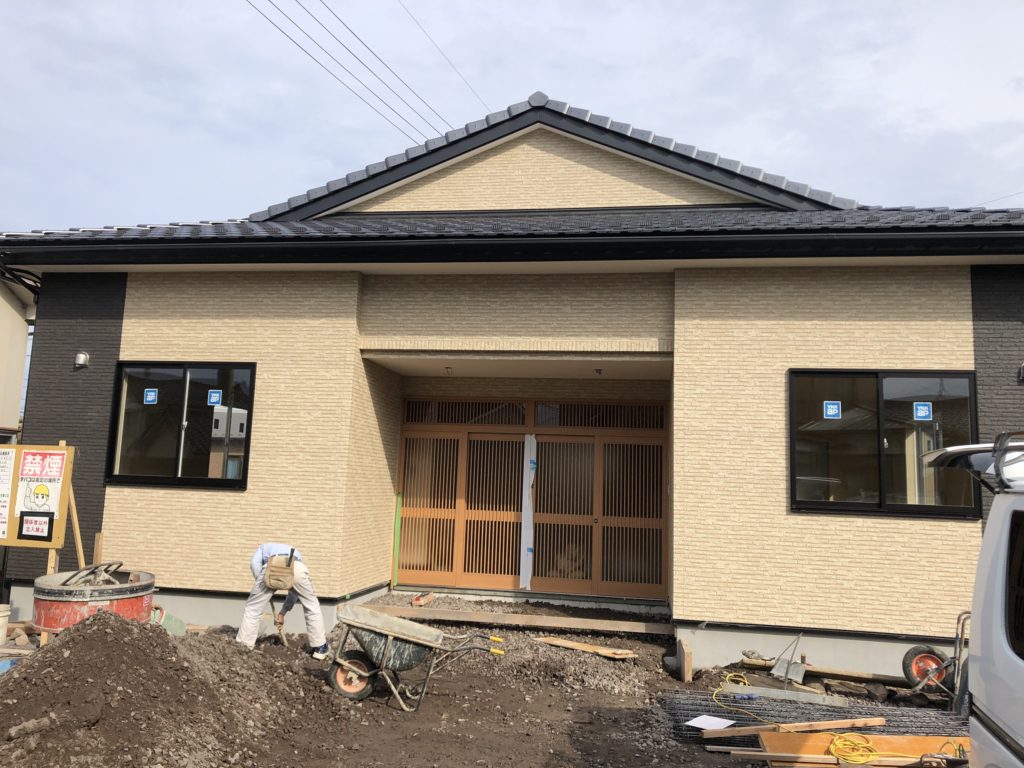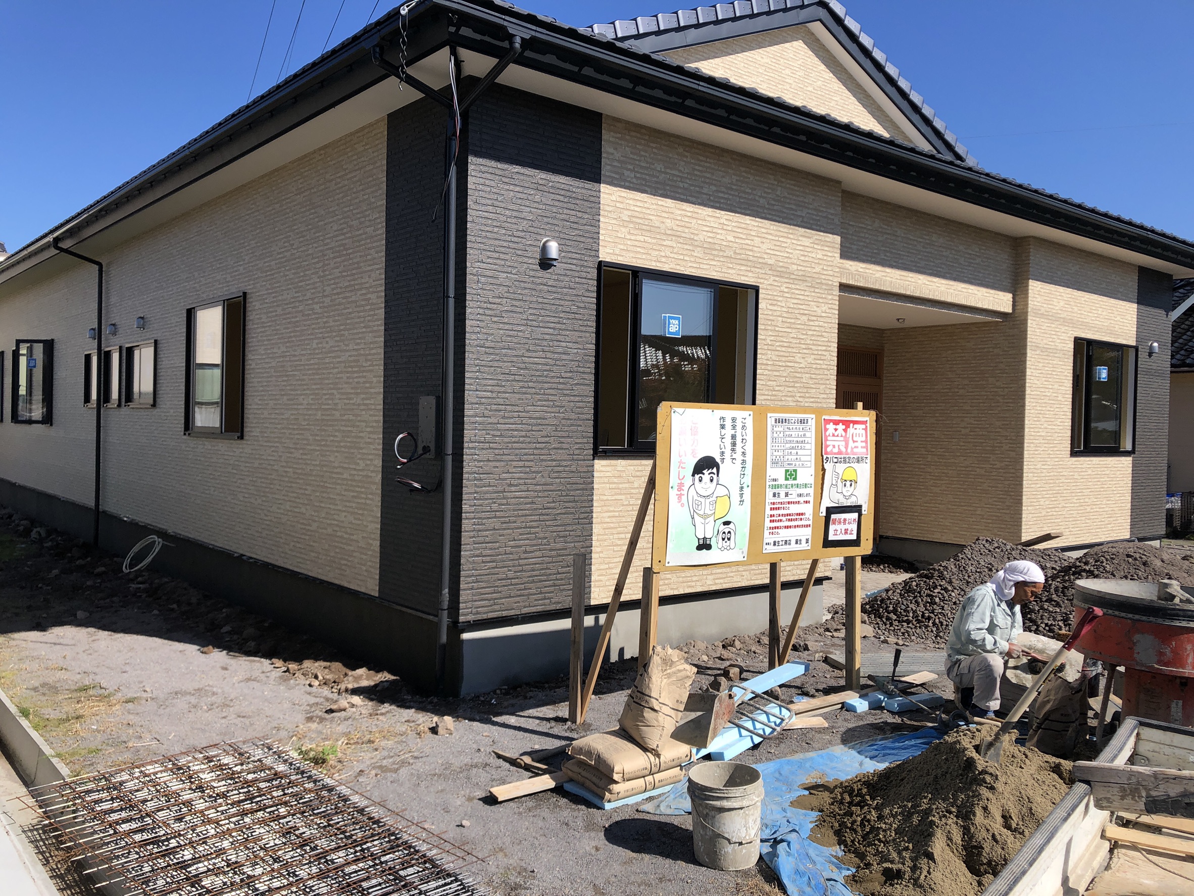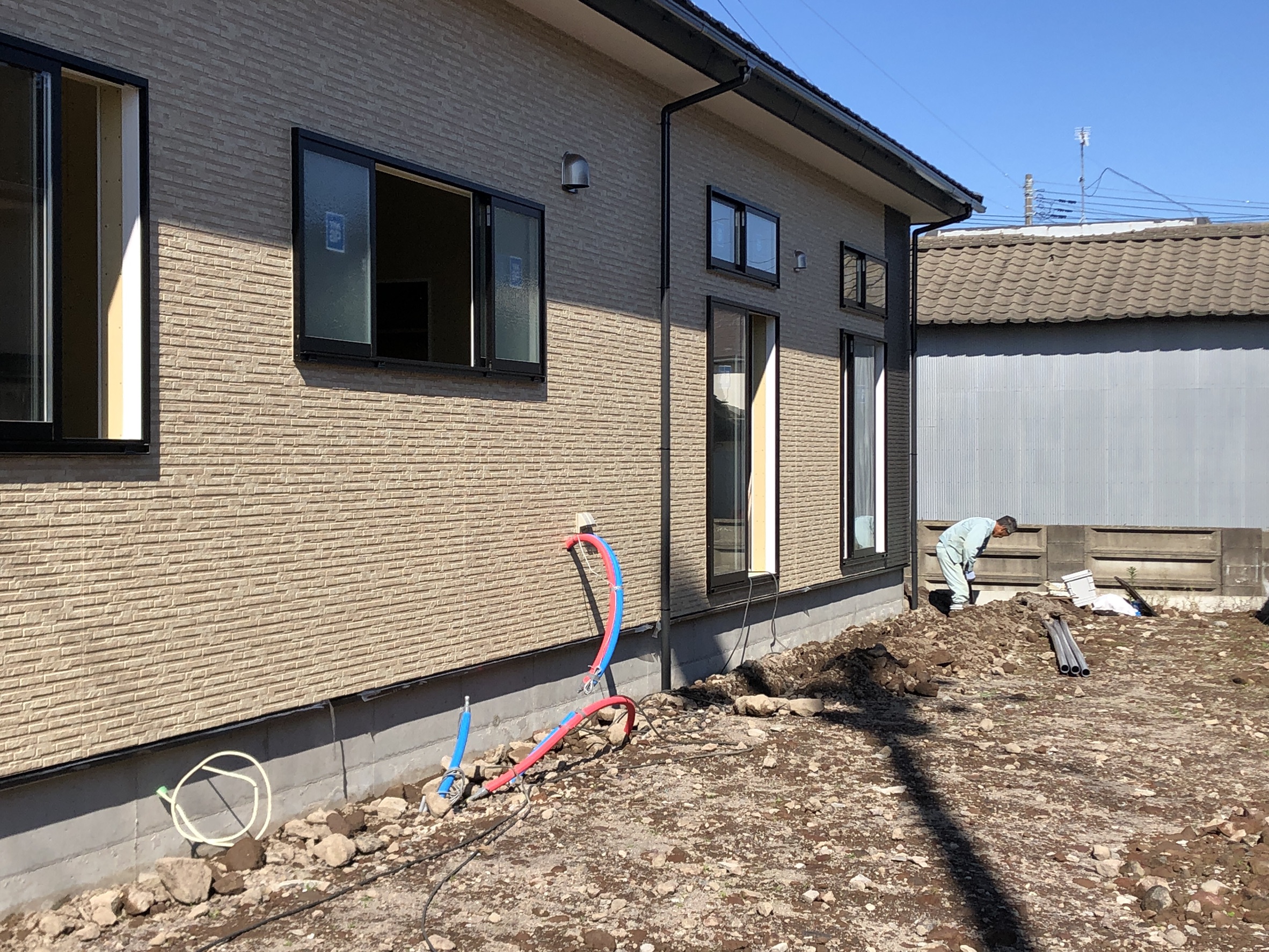 外装工事は完了しており、ガス給湯器配管・排水管工事や整地を行っています。会館の完成までもう少しですね。